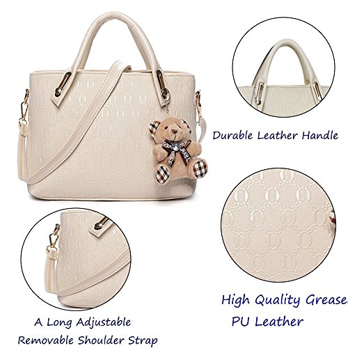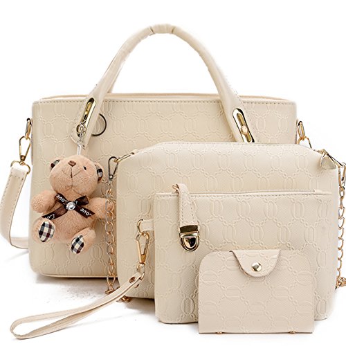 FiveloveTwo Donne 4Pcs Borse a Mano Spalla Tracolla Zainetto Tote Borsa in pelle PU Grande Tote + Borsetta + Borsa a tracolla + Porta carte Beige