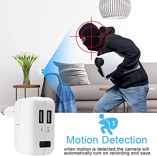 FiveSky 1080P HD USB Adattatore per Caricatore da Parete Fotocamera Mini Presa Telecamera con Rilevazione di Movimento Telecamera di Sicurezza Domestica Piccola Telecamera di Sorveglianza, Black