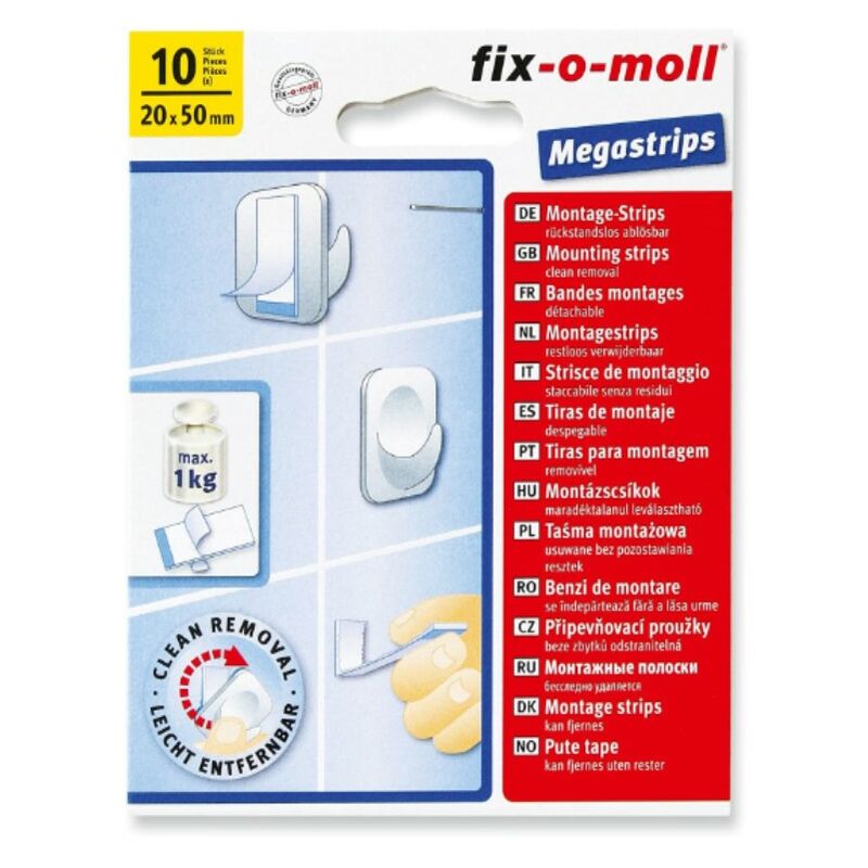 FIX-0-MOLL - 10 PEZZI - MINI STRISCE BIADESIVE DI MONTAGGIO - MULTIFUNZIONE - COLORE BIANCO Caratteristiche: Le strisce di montaggio MEGASTRIPS di fix-o-moll sono dei veri tuttofare, soprattutto quando gli oggetti più piccoli devono essere fissati in modo sicuro e affidabile. Sono fortemente adesive su entrambi i lati e possono essere rimosse senza residui poiché sono impermeabili e possono essere utilizzate perfettamente anche sotto la doccia.