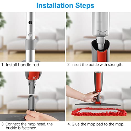 [Mop salva manodopera!] La testa del mop è larga 15x4,5 pollici / 38x11,5 cm, molto più grande del mop rotondo tradizionale, con il nostro mop spray puoi finire di pulire la tua casa nella metà del tempo che ti serve prima, riducendo notevolmente i lavori domestici pesanti