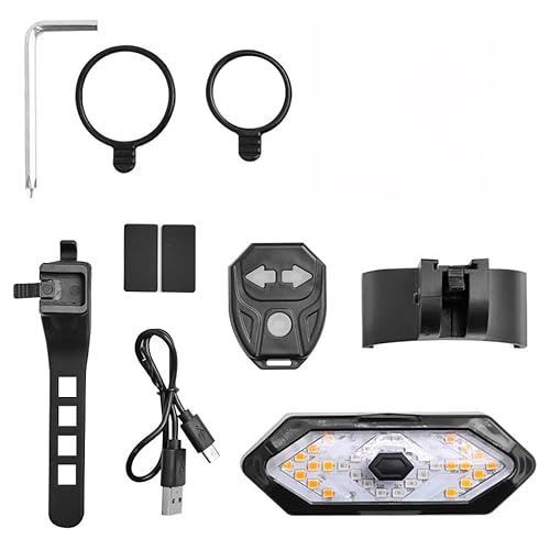 Indicatori di direzione composti da 32 LED ad alta visibilità color ambra, con fanalino stop integrato rosso, entrambi comandati da un pratico telecomando remoto alimentato con batteria CR2032 da installare sul manubrio con l'apposito ring in gomma
