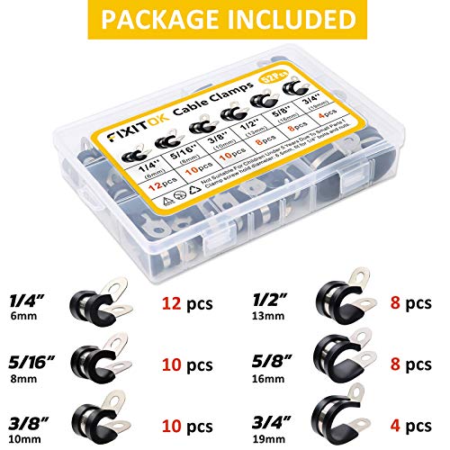 FIXITOK 52Pcs Gomma Morsetto per Cavi in Acciaio Inossidabile P Clips Gomma Fascette Stringitubo 6 Dimensioni 1/4" 5/16" 3/8" 1/2" 5/8" 3/4" Morsetto per Cavi in Gomma