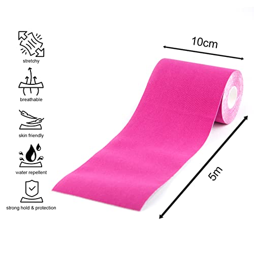 FixTape nastro kinesiologico 10cm x 5m I privo di lattice - impermeabile - traspirante - permeabile all'aria - per una libertà di movimento ottimale I Nastro kinesiologico I Tape Kinesio 5m (Rosa)