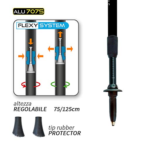 puntale rinforzato: sul puntale del bastoncino è stato applicato uno dei materiali più resistenti al mondo, il mettalo duro, per avere solidità e tenuta su ogni terreno