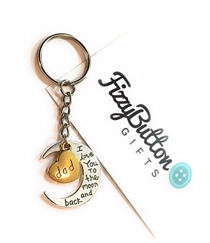 FizzyButton Gifts - Portachiavi con scritta "Dad I Love You to The Moon and Back", colore: Oro e Argento