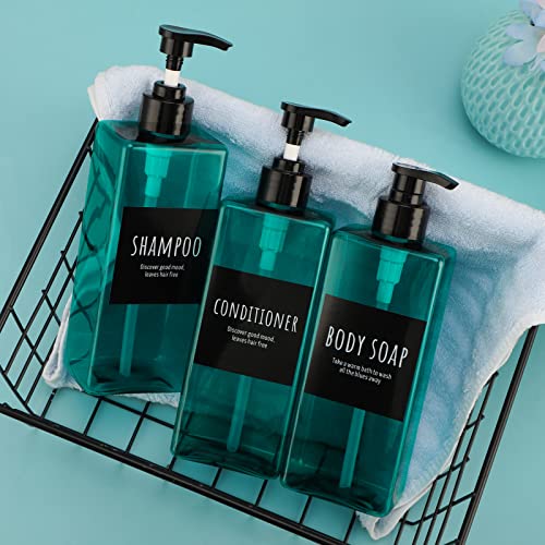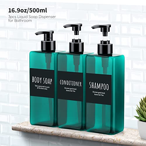 Flacone a Pompa Vuota Riutilizzabile, Segbeauty Flaconi per Balsamo Shampoo da 16,9 oz, Dispenser a Pompa da 3 Pezzi da 500 ml con Etichette, Contenitore per Lozione in Plastica, Verde Mare Chiaro