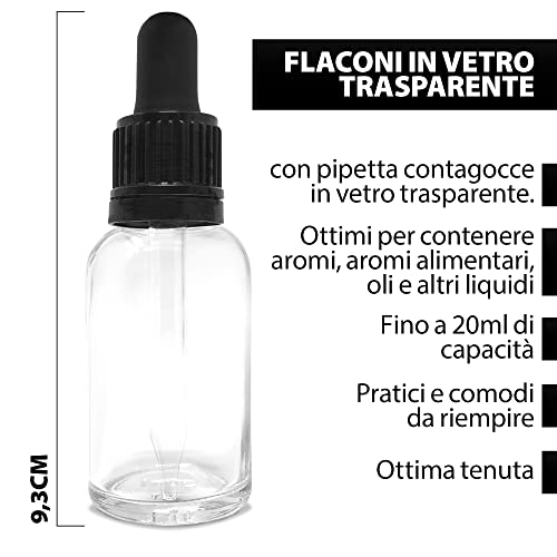 ✅ FLACONI IN VETRO: 6 Flaconi in vetro trasparente, dotati di tappo con Pipetta contagocce. Ogni flacone contiene fino a 20ml di liquido e sono ottimi per contenere aromi, oli, oli essenziali e altri liquidi che richiedono l'applicazione in gocce.