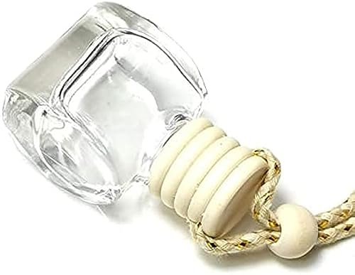 10 flaconi di deodorante per auto da appendere, in vetro, vuoti, per oli essenziali, profumi, aromaterapia, con tappi in legno e cordino per appendere (borsa)