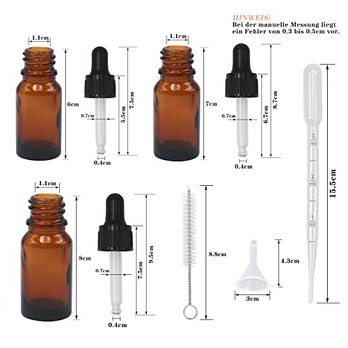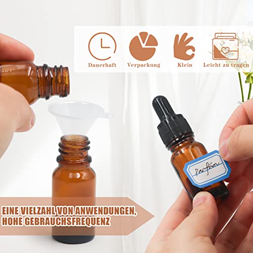 Set di 12 flaconi per pipette, flaconi contagocce in vetro ambrato, con tappo per pipetta nero e accessori ausiliari per oli essenziali, profumi, miscele di campioni fai da te (10, 20, 30 ml)