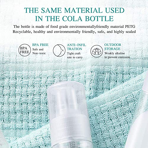 DUREVOLE E SICURO - Realizzato in materiale plastico ecologico di alta qualità, 100% privo di BPA, è riciclabile, sicuro e durevole. Nessuna preoccupazione per la qualità delle bottiglie da viaggio e possono essere utilizzate a lungo.