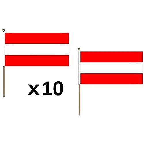AZ FLAG Pacco 10 Bandiere Austria 45x30cm con Asta di Legno - Bandiera AUSTRIACA 30 x 45 cm