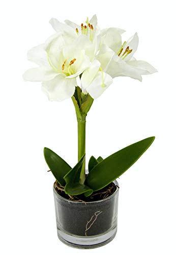 Flair Flower - Fiore Artificiale in Vetro Amaryllis di Natale, Decorazione Natalizia in Seta, composizioni Floreali in Vaso, Piante Artificiali, Bianco, 31 x 14 x 12 cm