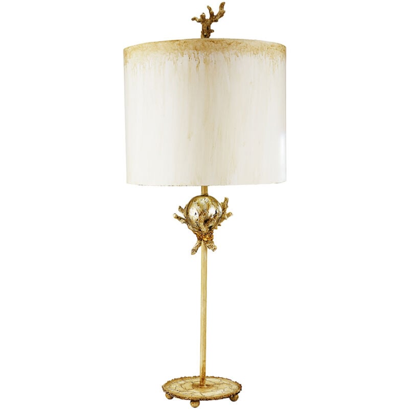 Collezione Trellis RAMI SCULTOREI Lampada da tavolo a 1 luce . Base e stelo in patina di stucco dipinta a mano con elemento a sfera in foglia d'argento. Completa il tutto un paralume cilindrico dipinto a mano.