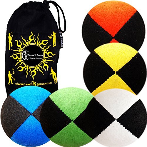 Flames 'N Games 5X PRO Thud Juggling Balls (Scamosciato) Professionale Palle da Giocoliere Set di 5 + Borsa Viaggio - Multicolor