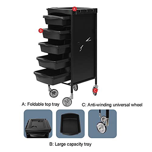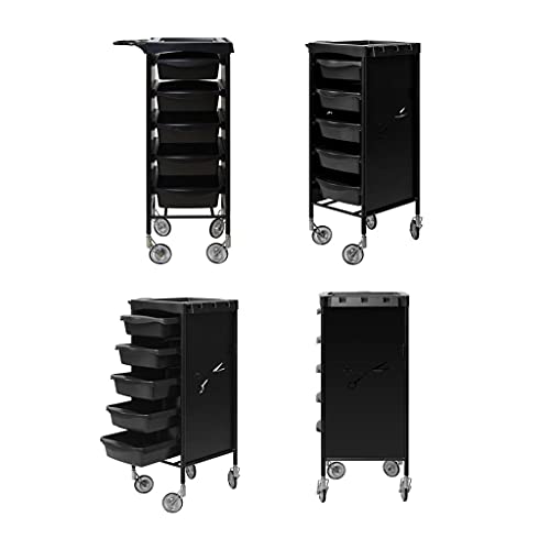 FLAMY Carrello Parrucchiere,Comodino,Carrello Porta Attrezzi da Parrucchiere a 5 Livelli,con Ruote,Carrello Porta Attrezzi Multifunzionale per riporre Attrezzi da Parrucchiere,Nero