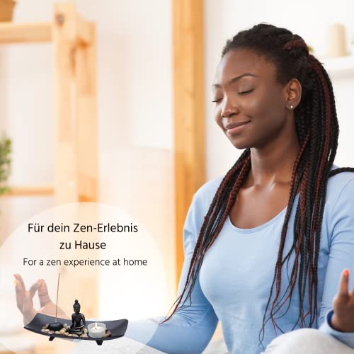 Flanacom Giardino Zen con Buddha - Giardino Giapponese in Miniatura - Portaincenso Feng Shui - Set Esoterico con 3 Bastoni di Incenso - Portafortuna Buddhismo e Taoismo (Candelieri #2)