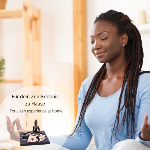 Flanacom Giardino Zen con Buddha - Giardino Giapponese in Miniatura - Portaincenso Feng Shui - Set Esoterico con 3 Bastoni di Incenso - Portafortuna Buddhismo e Taoismo (Yin Yang)