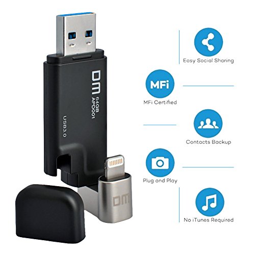 DM Flash Drive con adattatore connettore Lightning per iPhone, iPad, Memory Stick Archiviazione Esterna [Apple MFi certificato] Nero 32 GB