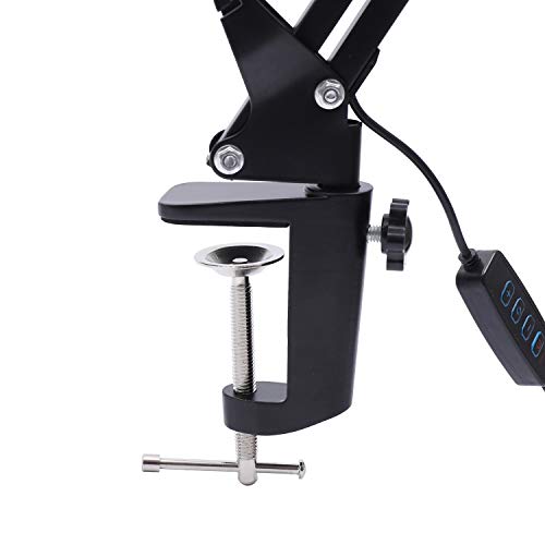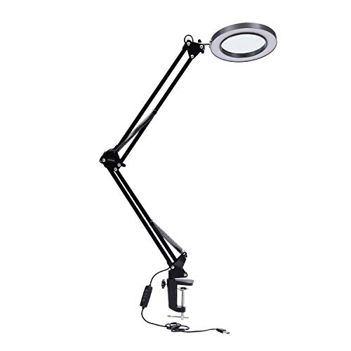 NEW FLASH Lampada con Lente D'ingrandimento, 5X Lampada da Scrivania con Pinza, Lampada da Lavoro, Modi di 3 Colori, USB Alimentata, 370mm Regolabile Braccio Girevole in Metallo (Nero, 12W)