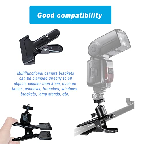 Flash Riflettore Supporto Clip Testa a Sfera Rotante Clip per Fotocamera Supporto a Pinza in Metallo per Flash da Studio Supporto a Pinza Stabilizzatore Fotocamera per Fotocamera Treppiede 2 Pezzi