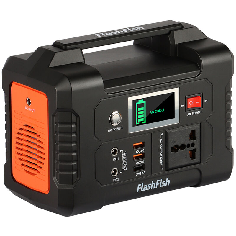 La stazione di alimentazione portatile Flashfish E200 è stata progettata per l'alimentazione di attività all'aperto'. Le sue dimensioni ridotte e la sua grande capacità sono in grado di soddisfare le diverse esigenze di alimentazione in ambienti interni ed esterni. Caratteristiche: 【Capacità più grande】 Gruppo di alimentazione al litio ricaricabile incorporato da 40800mAh/151Wh, 200W di uscita continua e 250W di picco di potenza sufficiente a soddisfare le diverse esigenze di alimentazione. Perfetto backup di emergenza per casa/viaggio/campeggio/lunghi viaggi su strada. Porte di uscita per la ricarica ad alta velocità】 Il generatore portatile E200 supporta più uscite: 2 porte DC, 2 porte USB QC 3.0, 2 porte CA, 1 porta USB automatica da 5 V/2.4 A. Offre la ricarica più rapida ed efficiente per i vostri dispositivi. Design portatile con display LCD】 L'ampio schermo LCD consente di visualizzare chiaramente lo stato delle energie rimanenti/carica/scarica/uscita CA/uscita CC. Dimensioni