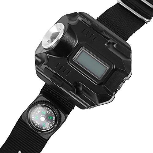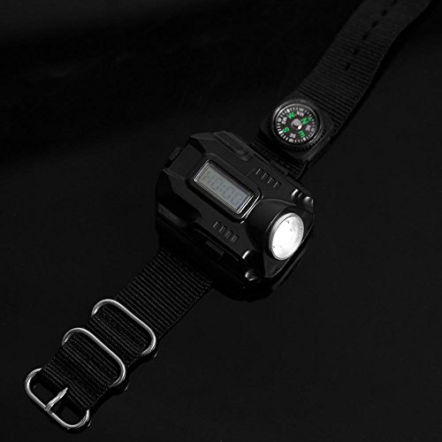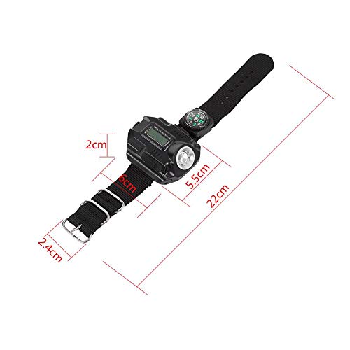 LED Flashlight Wrist Watch USB Rechargeable Wrist Torch Light with Compass Portable Tactical Wristlight Running Light Wrist for Running Mountain Biking Climbing Camping
