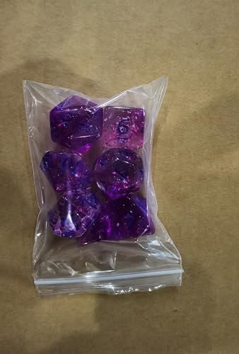 FLASHOWL Dadi a nastro colorato in cristallo trasparente D20 Dungeons and Dragons Dice Giochi Dadi da tavolo Dice Polyhedral Roll Play W20 Dice DND RPG MTG Dadi poliedrici (7 Pezzi Pupple)