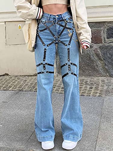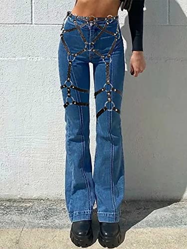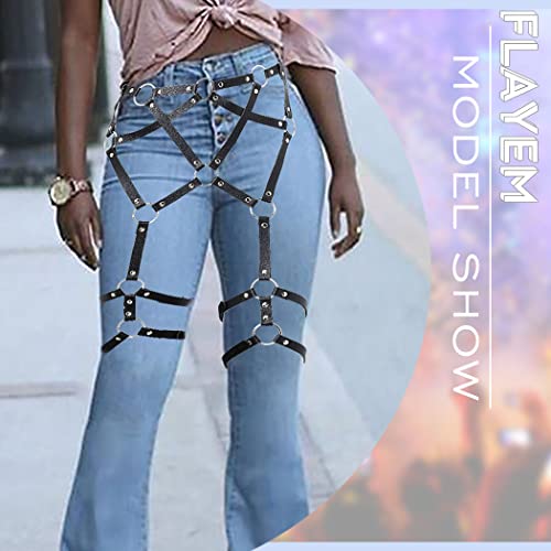 Flayem Cuoio Gamba Corpo Catene Punk Giarrettiera Croce Cintura Nightclub Roccia Coscia Catena per Donne e ragazze