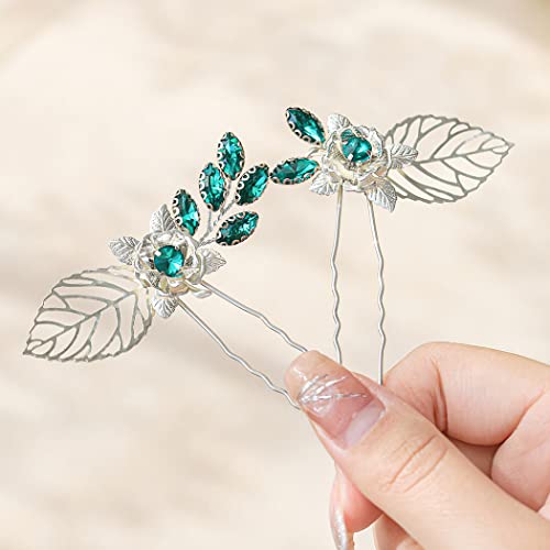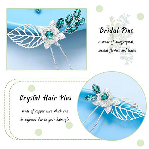 Design: le foglie d'argento scavate, adornate con strass verdi, rendono il design a forcina più unico. A causa delle diverse luci e angolazioni di ripresa, potrebbero esserci lievi differenze di colore. Appartiene al fenomeno normale.