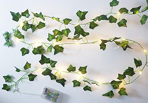 FLCSIed - Ghirlanda di luci a forma di foglia verde, 2 m, 20 LED, flessibile, in rame, ideale per interni, camera da letto, matrimoni, decorazioni per feste (bianco caldo)
