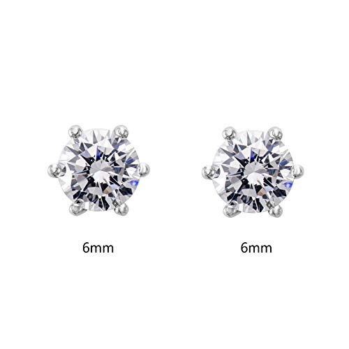 Flechazo 5mm/6mm Zirconia Cubica Argento Orecchini a Bottone Donna Ragazze, Argento Sterling 925 sei Griffe Simulazione Diamante Orecchini a Lobo, Lobo Dell'orecchio Piercing Gioielli