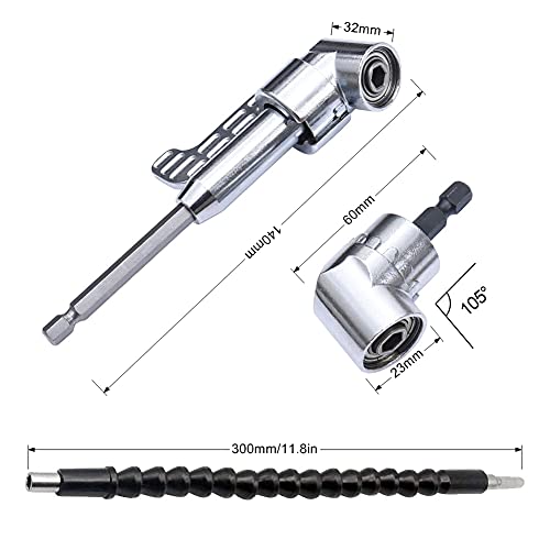 1/4 "flessibile albero esagonale cacciavite Power Drill Bit Extension 105 gradi dispositivo angolo + giunto avvitato + flessibile barra di prolunga accessori per cacciavite elettrico 3PCS