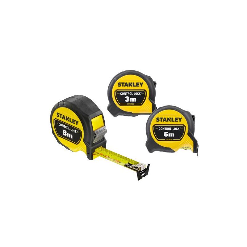 Flessometri Stanley Controllock FRivestimento completo del nastro in poliestere e ulteriore rivestimento dei primi 7 cm. con pellicola Blade Armor, pulsante di bloccaggio, magnete separabile (nei flessometri da 5 - 8 mt.), finestrella per il rallentamento del nastro (nei flessometri da 5 - 8 mt.). Stampa del nastro recto-verso STHT37230-0 - 3 mt. x 19 mm.