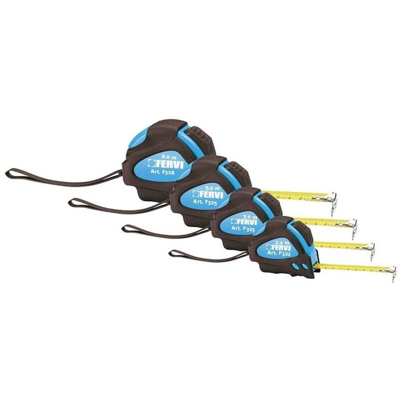 FLESSOMETRO MAGNETICO 5M FERVI F325 CON FRENO AUTOMATICO E MAGNETE Dimensioni nastro: 5 m x 25 mm Classe di precisione: II