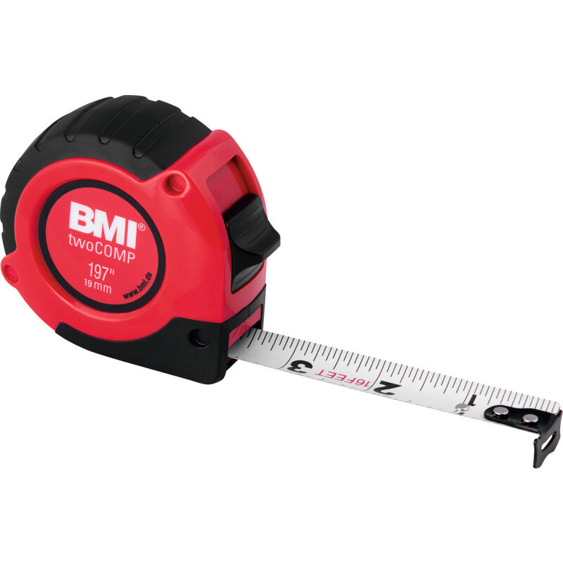 Flessometro tascabile con lettura in pollici. Scala pollici/pollici (bordo superiore e inferiore). Meccanica robusta e pratico clip da cintura. Corpo in plastica ABS resistente agli urti con componenti morbidi antiscivolo per un utilizzo sicuro. Con bloccaggio del nastro e ritorno automatico smorzato. Nastro in acciaio bianco e opaco dove i pollici sono indicati in nero e i piedi in rosso. Dati tecnici Taratura G1 Tipo di prodotto Flessometro Altezza corpo, mm 36 Norma EG II Lunghezza del nastro, Zoll 192 Lunghezza del nastro, m 5 Larghezza del nastro, mm 19 Larghezza corpo, mm 70 Lunghezza corpo, mm 70
