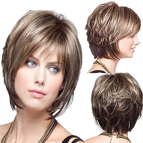Fleurapance - Parrucca da donna a caschetto corto, super naturale, resistente al calore, bionda