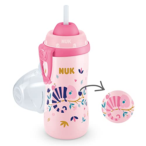 NUK Flexi Cup tazza per bambini con effetto camaleonte | 12+ mesi | Cangiante | Cannuccia morbida anti-goccia | Clip e coperchio protettivo | Senza BPA | 300 ml | Camaleonte (rosa)