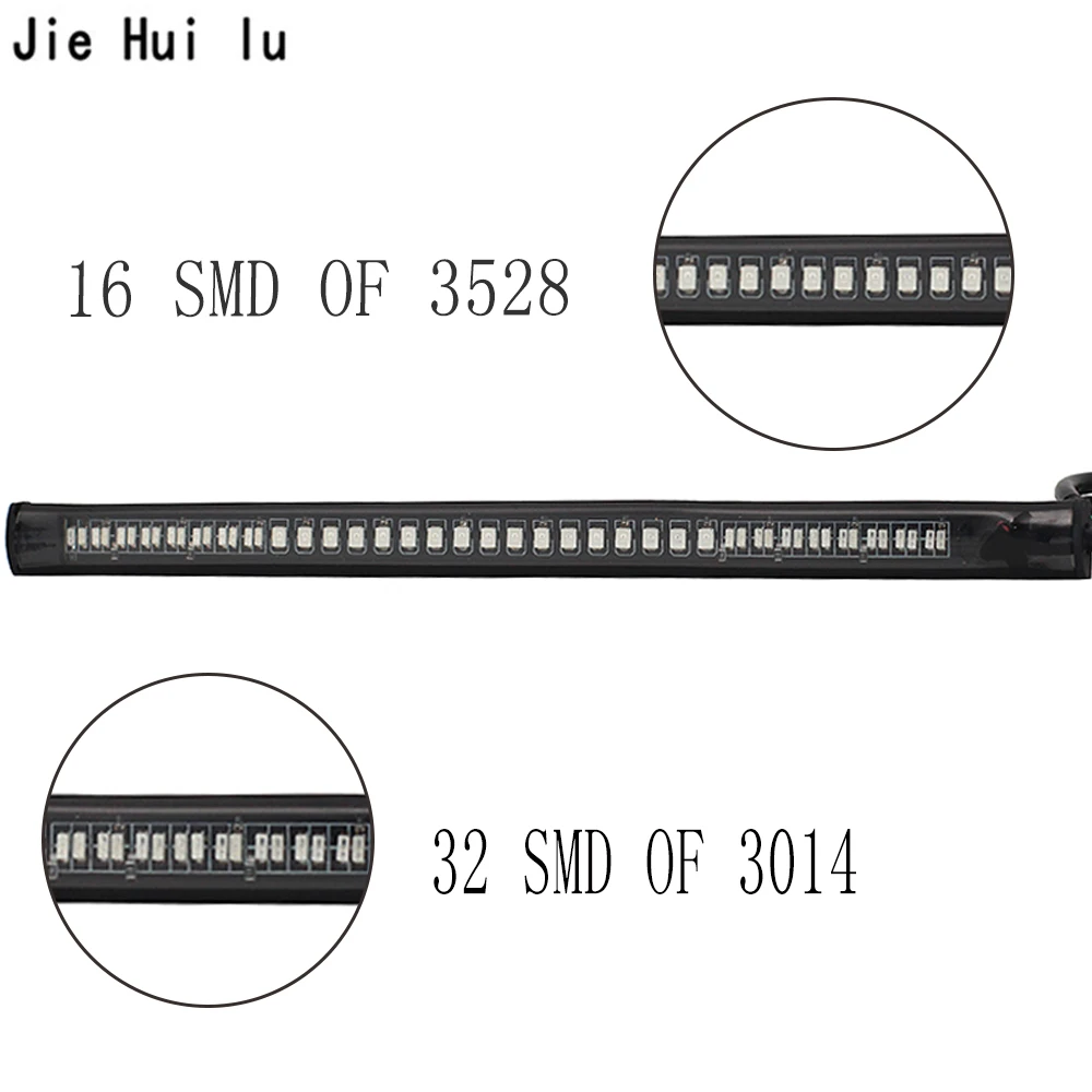 Flexible 48 LED 2835 3014 smd Dual Color Yellow Red Light Motorcycle Strip Turn Signal Tail Rear Brake Stop Waterproof Bulb Lamp