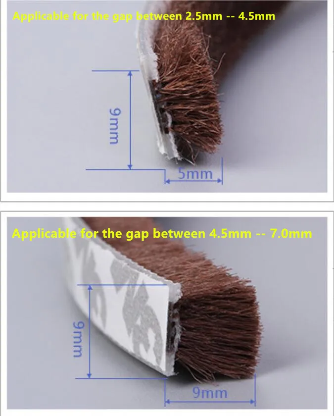 Flexible Self Adhesive Sealing Strips Door Draught Excluder Brush Window Weather Strips 2 sizes 3 colors available