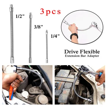 3x Flexible Socket Extension Rod Bar Ratchet Wrench Tool 1/4 3/8 1/2 Inch Flexible Extension Socket