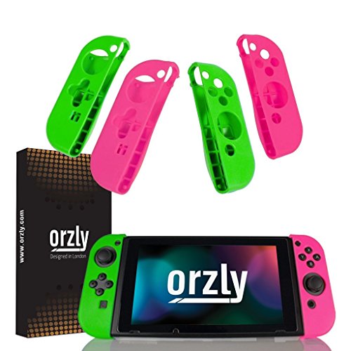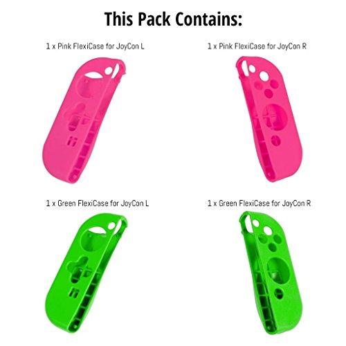 FlexiCase Orzly (Confezione 4) per Joy-Cons Switch - Due Custodie Protettive (2x ROSA & 2x VERDE) [Custodie leggere, durevoli, flessibili e gommate] per Telecomandi Joy-Con destro e sinistro del Nintendo Switch