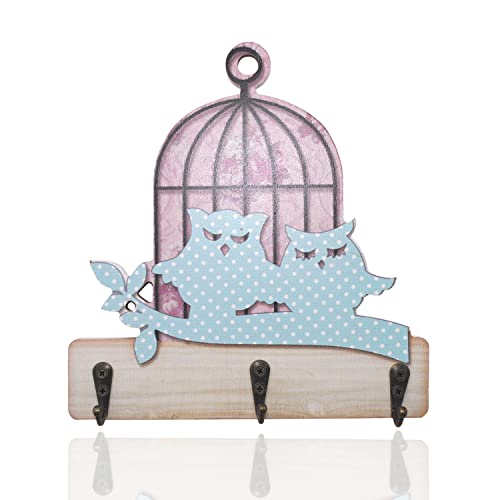 FLEXIMAXX HOME Appendiabiti chiavi a parete (3 ganci) Chiavi da parete originali in legno, Porta chiavi per ingresso casa ufficio, guardi chiavi (BUHO)