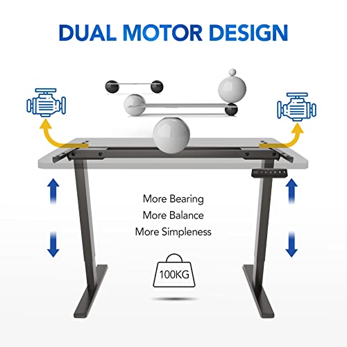 FLEXISPOT EB2+120 * 60cm Certificato FSC Scrivania Regolabile in Altezza Standing Desk 2 Motori 2 Sezioni Scrivania Elettrica Scrivania Motorizzata con Piano (GRIGIO+NERO)