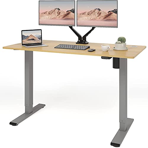 FLEXISPOT EG1-SET 140 x 70 cm Scrivania Regolabile in Altezza Standing Desk Scrivania Elettrica Scrivania Motorizzata Telaio in Acciaio Solido a 2 stadi Per Lavorare da Casa (Grigio+Bambù)