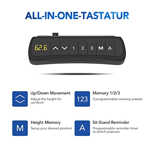 scrivania con ALTEZZA PREIMPOSTATA, per lavorare in modo ERGONOMICO - non dovrai più chinarti davanti al computer per 8-10 ore. Il passaggio dalla posizione seduta a quella in piedi è facile con le nostre scrivanie. La scrivania FLEXISPOT con controller avanzato e 3 posizioni preimpostate,e il promemoria da SEDUTO o IN PIEDI ti aiuta anche con le tue ore di lavoro.