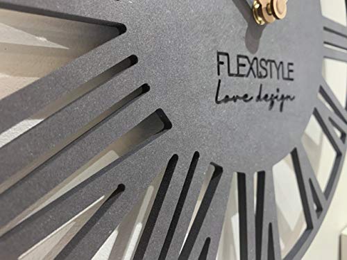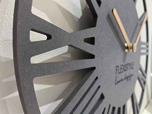 FLEXISTYLE EKO LOFT Piccolo - Orologio da parete senza ticchettio, nero, 30 cm, per soggiorno, camera da letto, prodotto in UE, antracite