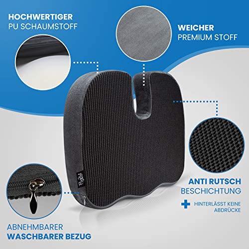 Flexlet ® Cuscino ergonomico - Diversi gradi di durezza per il vostro peso corporeo, forte sollievo dalla pressione, rivestimento in velluto confortevole, grigio, cuscino per coccige [40 - 70 kg]