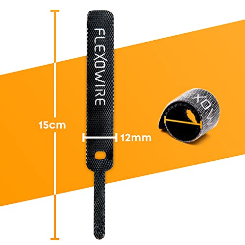 Flexowire Fascette per cavi in velcro, 50 pezzi, 15 cm x 12 mm, colore nero, 15 cm x 12 mm