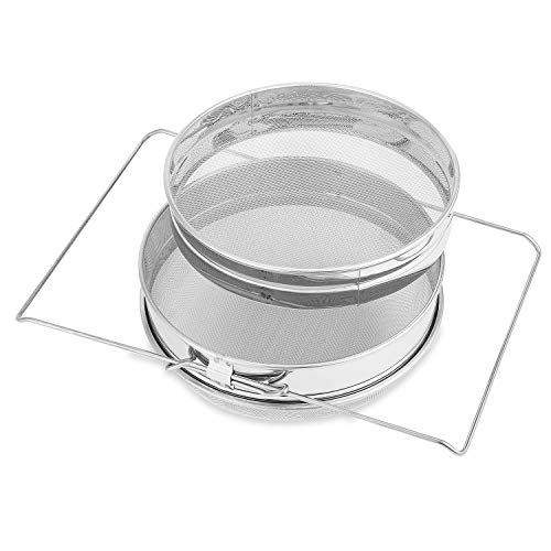 Flexzion Filtro per miele in acciaio inossidabile inox, Attrezzatura essenziale setaccio a doppio strato con bracci estensibili, Maglia fine/grossolana che filtra polline d'api, Grumi di cera