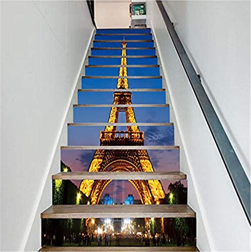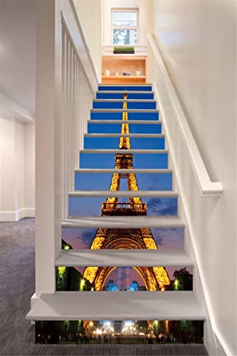 FLFK 13Pcs Adesivi per scale autoadesivi Torre Eiffel di Parigi 3D - Adesivi per scale staccabili e attaccabili per la decorazione di montanti per scale in casa e ufficio 39,3 "w x 7" h